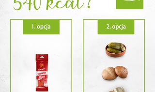 540 kcal w formie paczki kabanosów vs. 2 grahamek, puszki tuńczyka oraz 3 ogórków kiszonych. Kabanosy mogą dostarczyć szybką dawkę energii, ale zawierają również dużo tłuszczu i soli. Z drugiej strony, kanapka z tuńczykiem i ogórkami kiszonymi to źródło białka, kwasów omega-3 oraz błonnika.